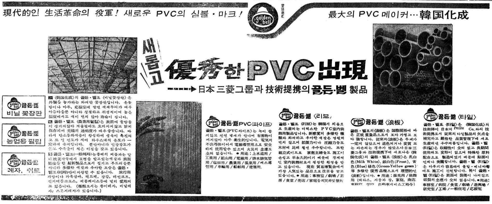 1912년에 특허가 등록되었지만 상업화가 되기 시작한 시점은 1927년 미국 타이어 회사인 BFGoodrich에 의해 생산되기 시작하였다. 딱딱한 경질로도, 부드러운 연질로도 가공 가능하고 절연성이 우수하여 고무 대체제, 특히 메탈파이프를 대체하여 배수, 배관재료로 빠르게 보급되었다. 건축에 가장 많이 쓰이는 플라스틱 중 하나이다.