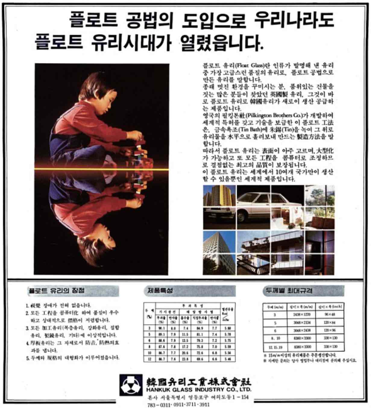 유리 제조의 발전은 크게 두 부분의 기술에 대한 개발이 관건이었다. 첫 번째는 유리를 용해하는 것(고체 상태의 모래, 석회석, 소다회 등의 원료를 섞어 고온에 가열하는 것), 두 번째는 녹은 유리를 식히는 과정에서 원하는 형태로 다루는 것이다. 오래전부터 녹인 유리를 막대에 감아 일일이 수작업으로 불어 형태를 굳혀 만든 유리의 제조는 19세기 중반 효율적이고 용이한 용해로가 개발되면서 대량생산이 가능해졌다. 또한 녹여 만든 유리를 좀 더 크게 불어 양 끝을 잘라낸 후 판판하게 펴서 더 큰 판유리를 생산하는 기술도 개발되었다. 1950년대 알라스테어 필킹턴(A. Pilkington)에 의해 개발된 플로트 유리(float glass) 공법은 기존의 판유리가 가지고 있었던 유리 표면의 불규칙함을 해소하고 일정한 두께의 유리를 대량으로 제조를 가능하게 하였고 이로써 다양한 두께와 사양을 가진 유리가 제조되기 시작했다.
